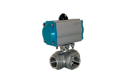 Кран шаровый трёхходовой L-тип, AISI304 DN32 (1_1/4"), с двухсторонним пневмоприводом AT63D