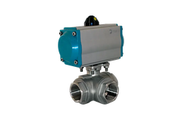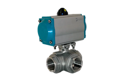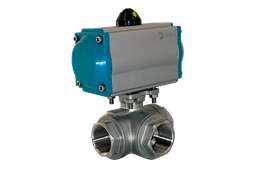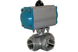 Кран шаровый трёхходовой L-тип, AISI316 DN40 (1_1/2"), с двухсторонним пневмоприводом AT75D