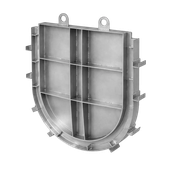 Щитовой затвор шандорный полукруглый — это плоский щит без направляющих и подвижного механизма, предназначенный для ручного перекрытия потока в трубах, коллекторах и каналах с полукруглым (или круглым) сечением. Чаще всего используется как временное или аварийное средство отключения участка трубопровода или сброса воды. Отличие от классических щитовых затворов — отсутствие привода и системы подъёма. Шандор устанавливается вручную, фиксируется в проёме или с помощью крепёжных элементов, и снимается по мере необходимости. | Запросить расчет |