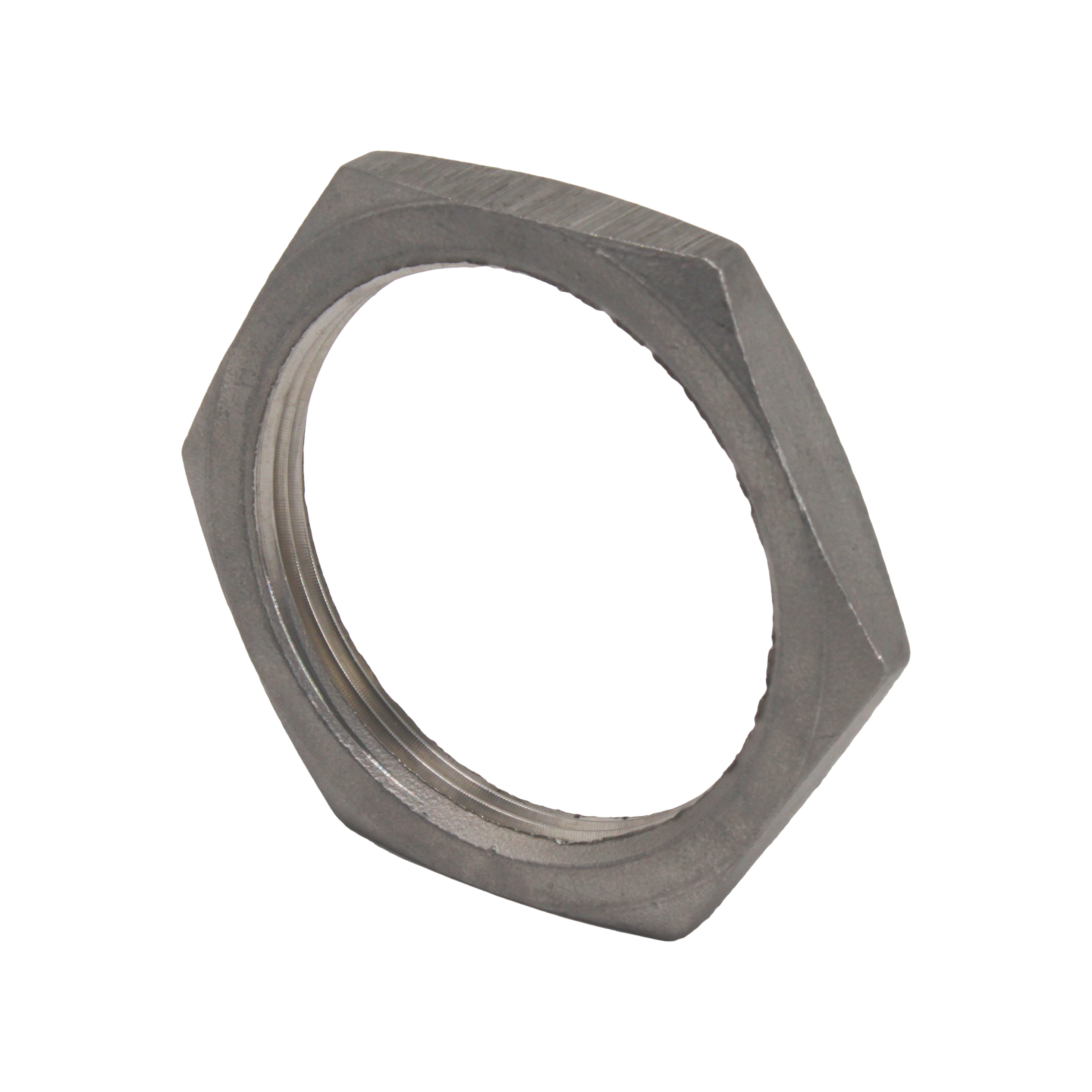 Контргайка 6-гранная нержавеющая, AISI304 DN50 (2"), (CF8), PN16 — элемент резьбового соединения, выполняющий функцию дополнительной фиксации. Эта вспомогательная деталь предназначена для предотвращения самопроизвольного отвинчивания основных соединительных элементов под воздействием вибраций, перепадов температур или механических нагрузок. Принцип ее действия основан на создании силы трения между двумя гайками - основной и контргайкой, что надежно блокирует соединение в требуемом положении.
