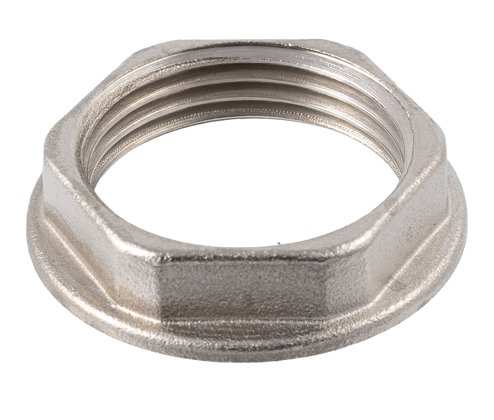 Контргайка 6-гранная с упором латунная никелированная, DN25 (1"), PN40