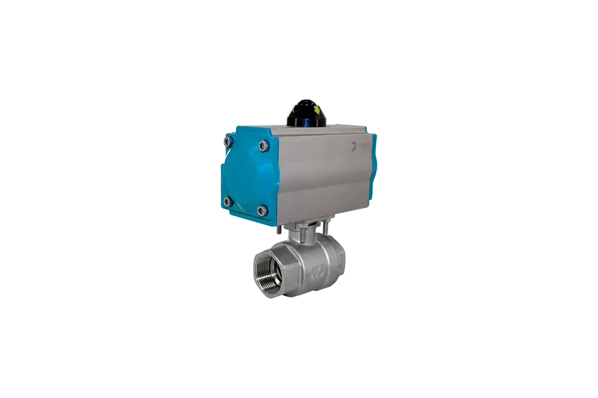 Пневматические приводы двойного действия управляются сжатым воздухом в обеих направлениях: как при открытии, так и при закрытии арматуры. Это обеспечивает максимально точное и стабильное срабатывание независимо от внешних условий. Такие приводы широко применяется в автоматизированных системах, где требуется высокая частота циклов, надёжность и предсказуемость. Используются с шаровыми кранами, затворами и клапанами, а также легко интегрируются с позиционерами, блоками датчиков положения с концевыми выключателями и электромагнитными пневмораспределителями. Кран шаровый муфтовый (2PC), AISI304 DN20 (3/4"), с двухсторонним пневмоприводом AT52D особенно востребован в технологических, пищевых, химических и водоподготовительных установках.