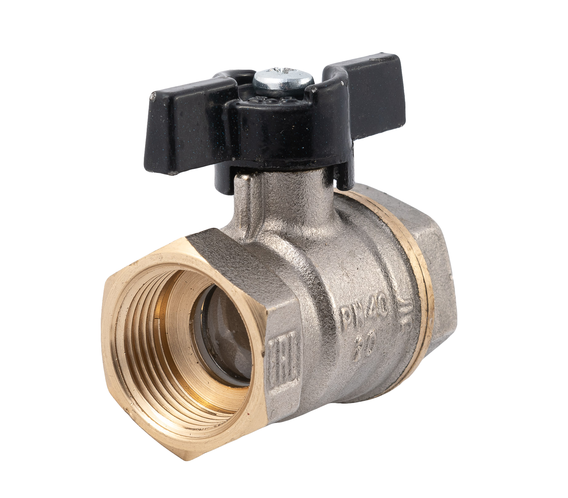 Кран шаровый муфтовый двусоставной латунный никелированный (2PC), DN20 (3/4"), PN40, ручка-бабочка относится к категории запорной арматуры, предназначенной для полного перекрытия потока среды в трубопроводе. В качестве запорного элемента используется шар, который гарантирует быстрое и надежное перекрытие потока, а также обладает минимальным гидравлическим сопротивлением в открытом положении.