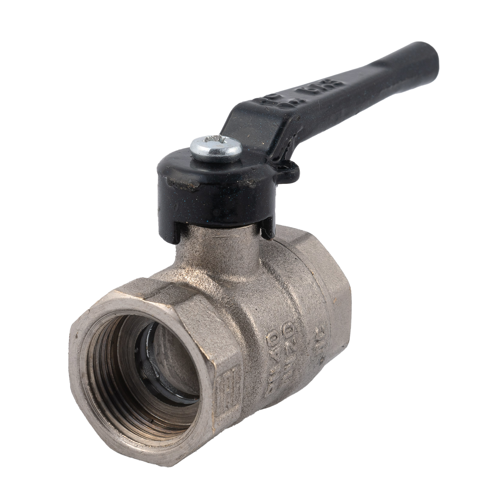 Кран шаровый муфтовый двусоставной латунный никелированный (2PC), DN20 (3/4"), PN40, ручка-рычаг относится к категории запорной арматуры, предназначенной для полного перекрытия потока среды в трубопроводе. В качестве запорного элемента используется шар, который гарантирует быстрое и надежное перекрытие потока, а также обладает минимальным гидравлическим сопротивлением в открытом положении.