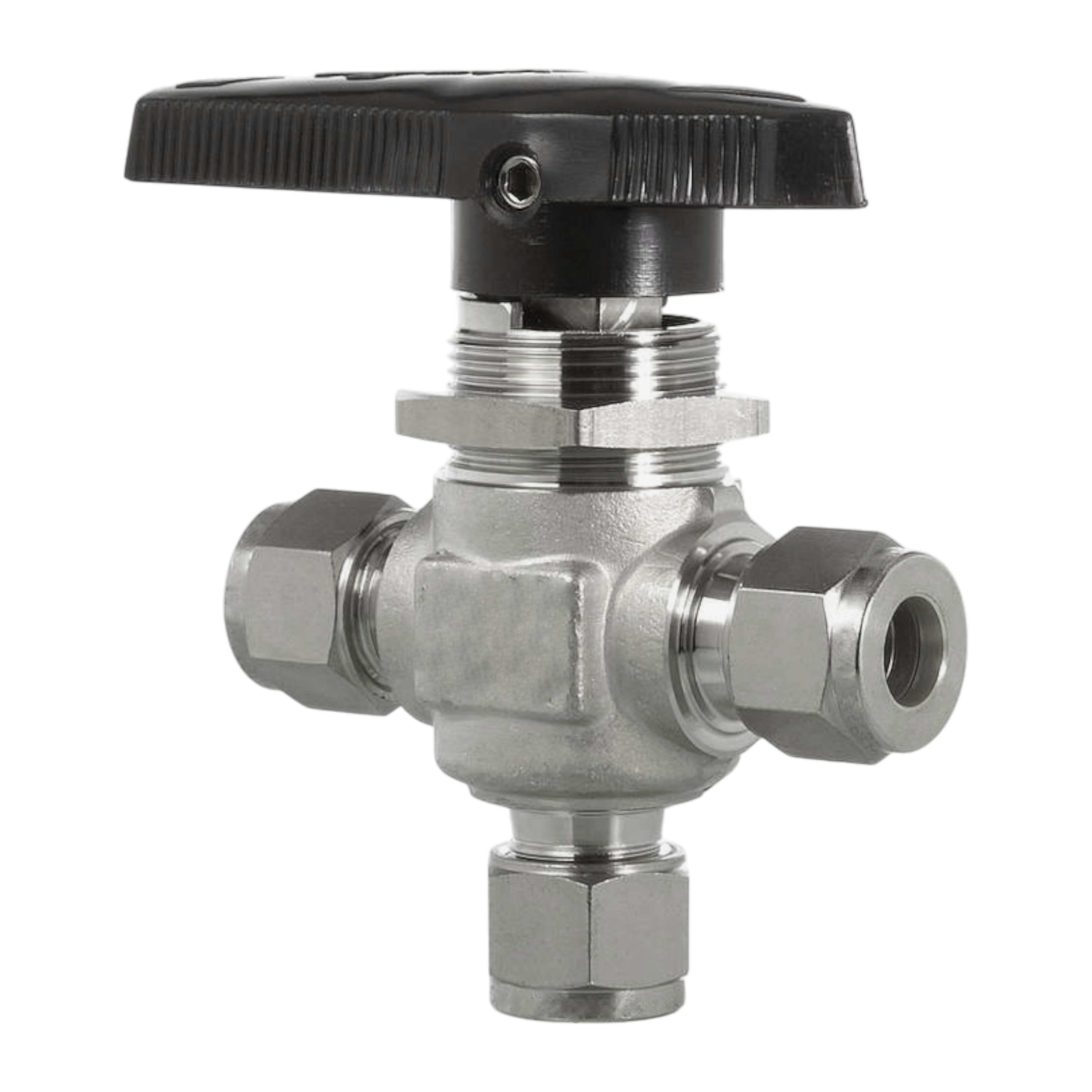 Кран шаровый обжимной трехходовой серия 112, ( об.вр.Д 1/2" x об.вр.Д 1/2" ), PTFE, 103PN