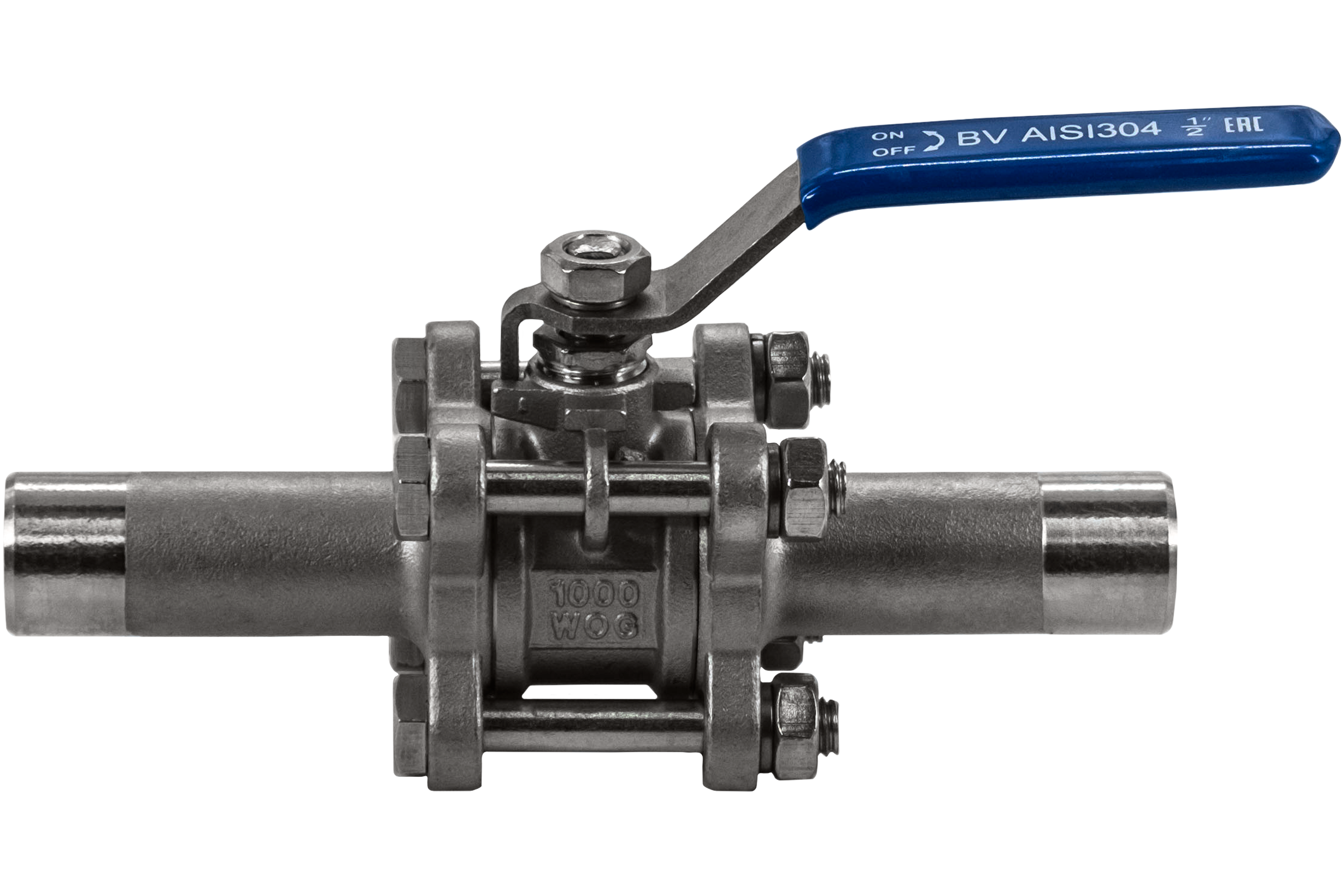 Кран шаровый приварной трехсоставной нержавеющий (3PC), AISI304 DN15 (1/2"), (CF8), PN64