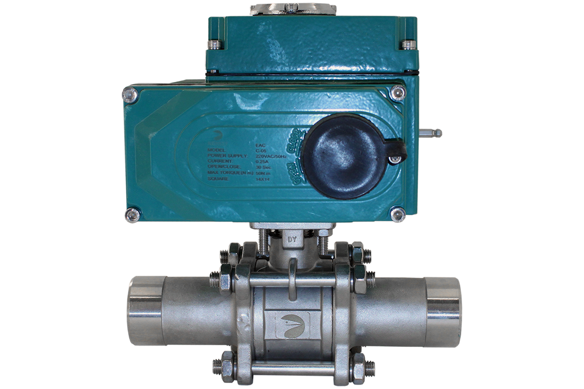 Кран шаровый приварной, AISI316 DN32 (1_1/4"), с электроприводом AC 220V (C-05)