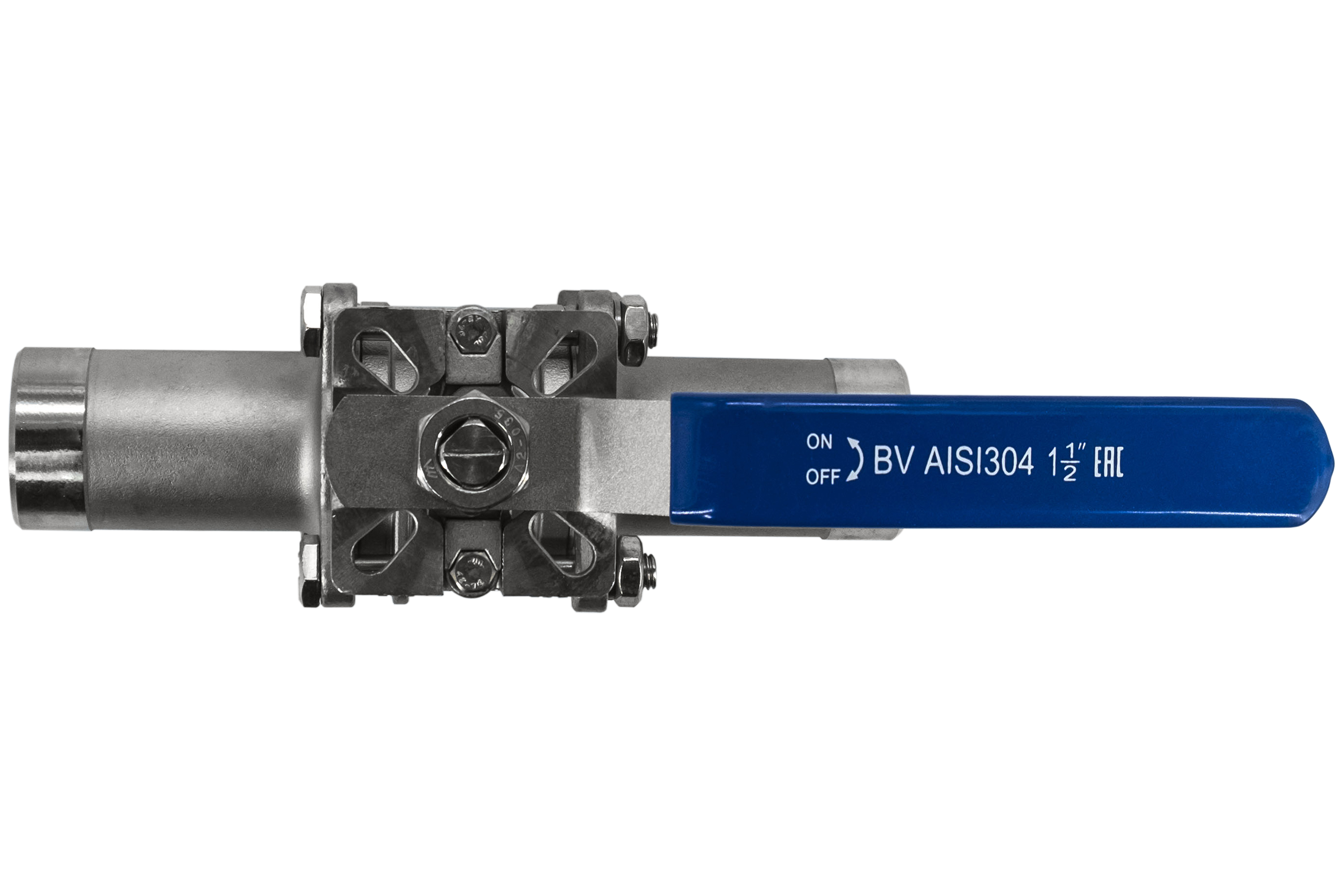 Кран шаровый приварной трехсоставной под привод нержавеющий (3PС), AISI304 DN40 (1_1/2"), (CF8),PN40