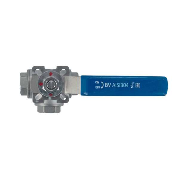 Кран шаровый трехходовой (T-тип) нержавеющий, AISI304 DN15 (1/2"), (CF8), PN64 относится к категории запорной арматуры, предназначенной для полного перекрытия потока среды в трубопроводе. В качестве запорного элемента используется шар, который гарантирует быстрое и надежное перекрытие потока, а также обладает минимальным гидравлическим сопротивлением в открытом положении.
