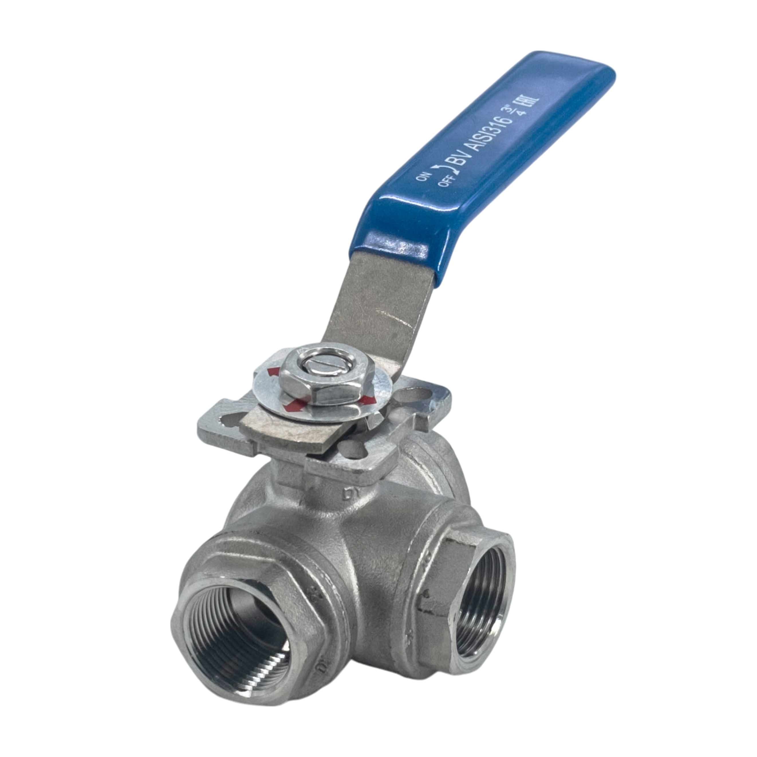 Кран шаровый трехходовой (T-тип) нержавеющий, AISI316 DN20 (3/4"), (CF8M), PN64 относится к категории запорной арматуры, предназначенной для полного перекрытия потока среды в трубопроводе. В качестве запорного элемента используется шар, который гарантирует быстрое и надежное перекрытие потока, а также обладает минимальным гидравлическим сопротивлением в открытом положении.