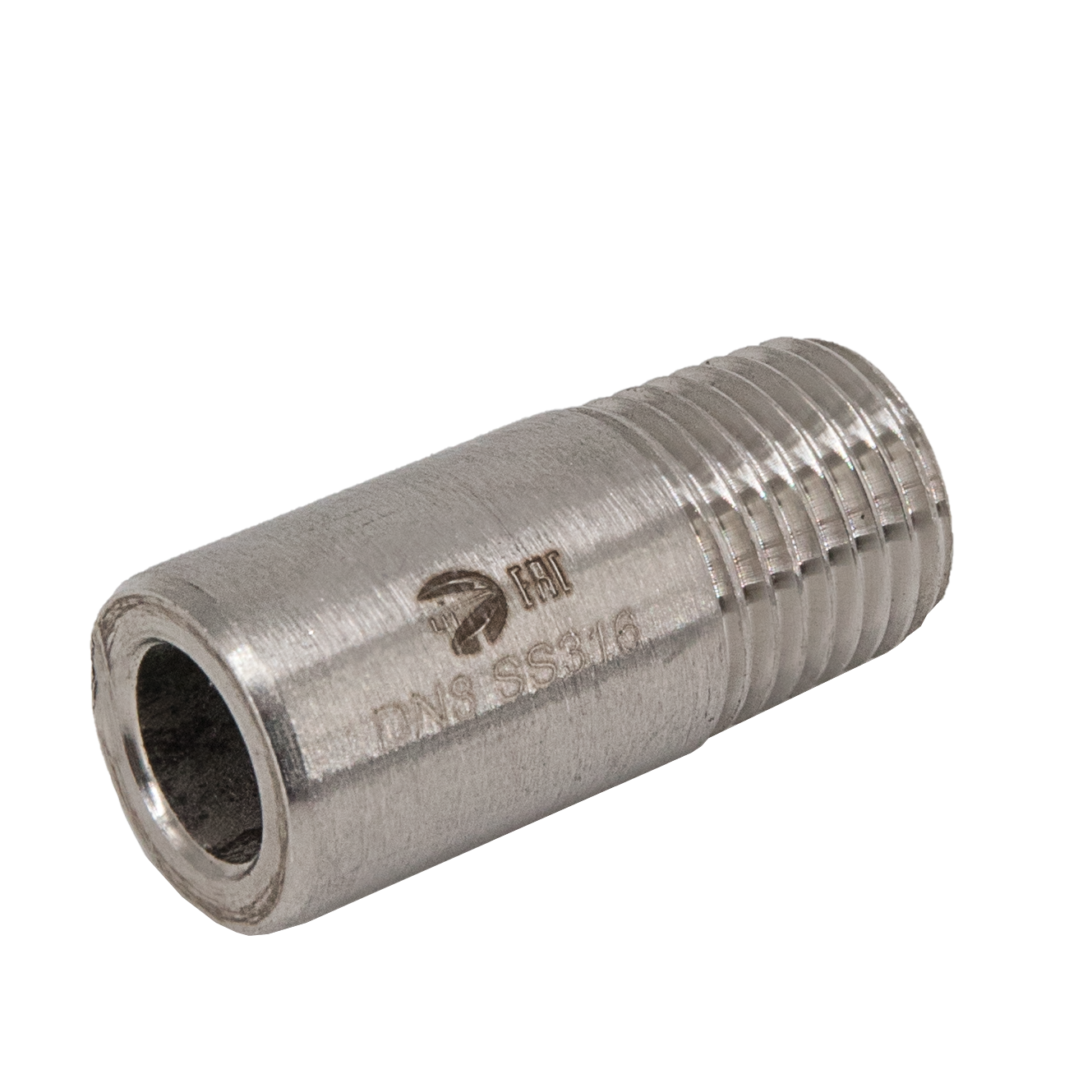 Ниппель приварной нержавеющий, AISI316 DN 8 (1/4"), (CF8M), PN16 — компактный соединительный элемент трубопроводов в виде короткой трубки с наружной резьбой на обоих концах. Эти универсальные детали предназначены для герметичного соединения двух частей трубопроводной системы с внутренней резьбой. Правильно подобранный ниппель обеспечивает надежное и долговечное соединение трубопроводных элементов.