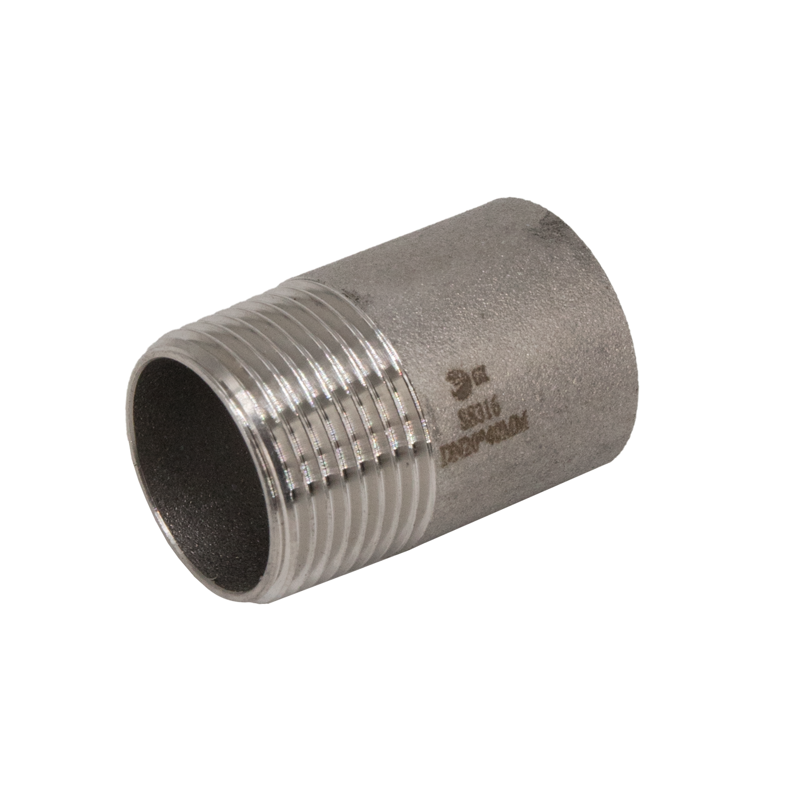 Ниппель приварной нержавеющий, AISI316 DN20 (3/4"), (CF8M), PN16 — компактный соединительный элемент трубопроводов в виде короткой трубки с наружной резьбой на обоих концах. Эти универсальные детали предназначены для герметичного соединения двух частей трубопроводной системы с внутренней резьбой. Правильно подобранный ниппель обеспечивает надежное и долговечное соединение трубопроводных элементов.