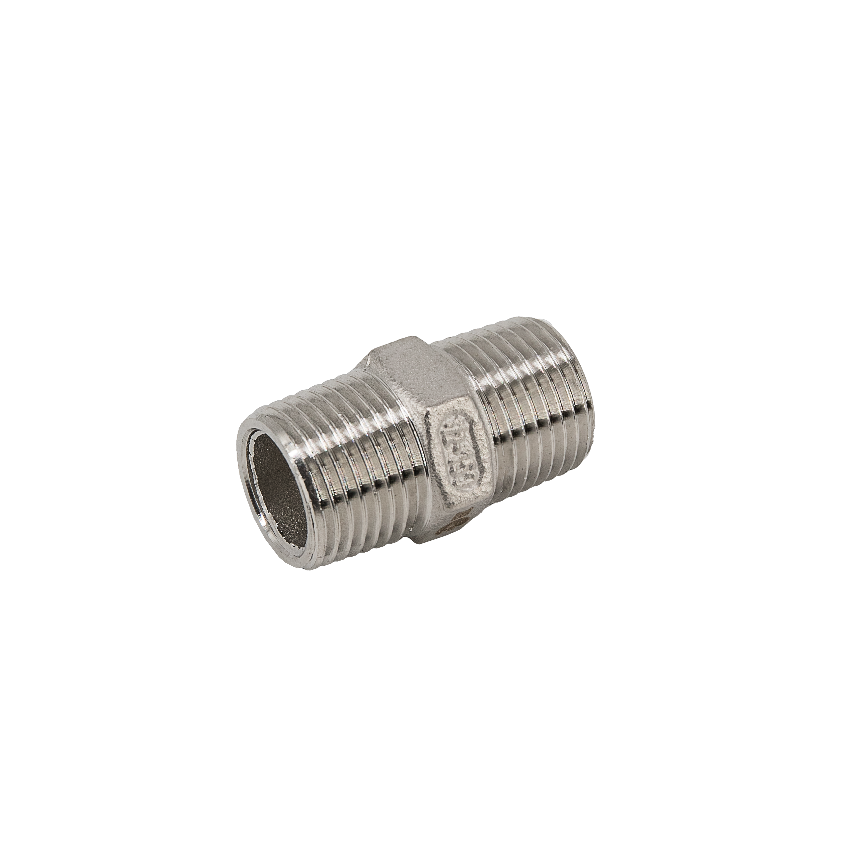 Ниппель резьбовой нержавеющий, AISI316 DN15 (1/2"), (CF8M), PN16 — компактный соединительный элемент трубопроводов в виде короткой трубки с наружной резьбой на обоих концах. Эти универсальные детали предназначены для герметичного соединения двух частей трубопроводной системы с внутренней резьбой. Правильно подобранный ниппель обеспечивает надежное и долговечное соединение трубопроводных элементов.