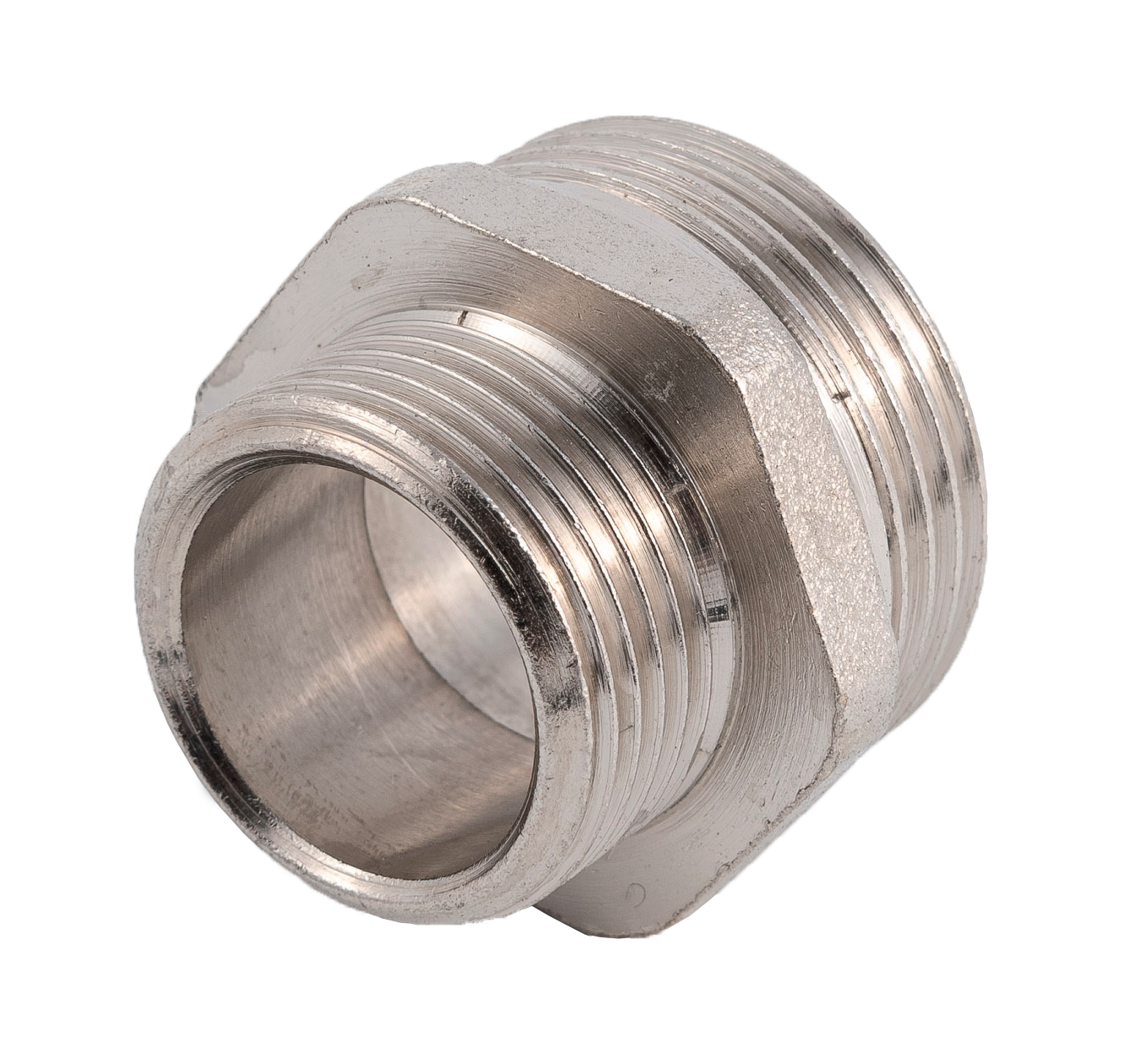 Ниппель резьбовой переходной латунный никелированный, DN25 х DN20 (1" х 3/4"), PN40 — компактный соединительный элемент трубопроводов в виде короткой трубки с наружной резьбой на обоих концах. Эти универсальные детали предназначены для герметичного соединения двух частей трубопроводной системы с внутренней резьбой. Правильно подобранный ниппель обеспечивает надежное и долговечное соединение трубопроводных элементов.