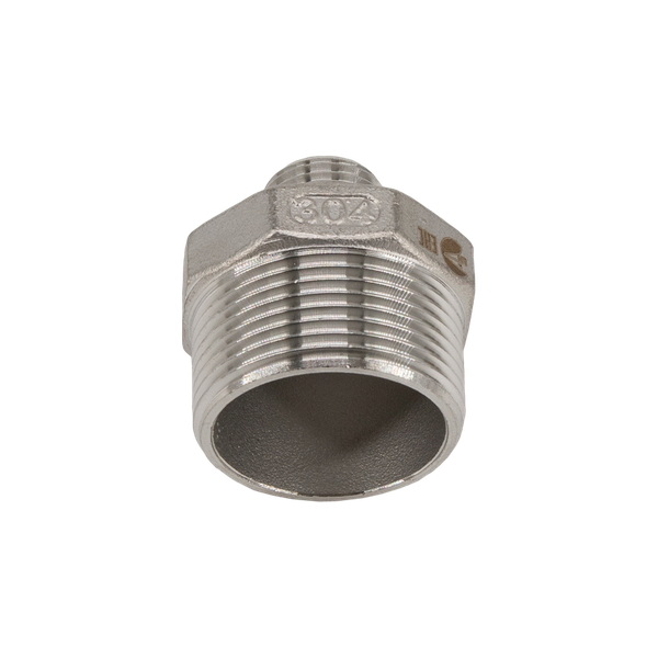 Ниппель резьбовой переходной нержавеющий, AISI304 DN32 х DN15 ( 1_1/4" х 1/2"), (CF8), PN16 — компактный соединительный элемент трубопроводов в виде короткой трубки с наружной резьбой на обоих концах. Эти универсальные детали предназначены для герметичного соединения двух частей трубопроводной системы с внутренней резьбой. Правильно подобранный ниппель обеспечивает надежное и долговечное соединение трубопроводных элементов.