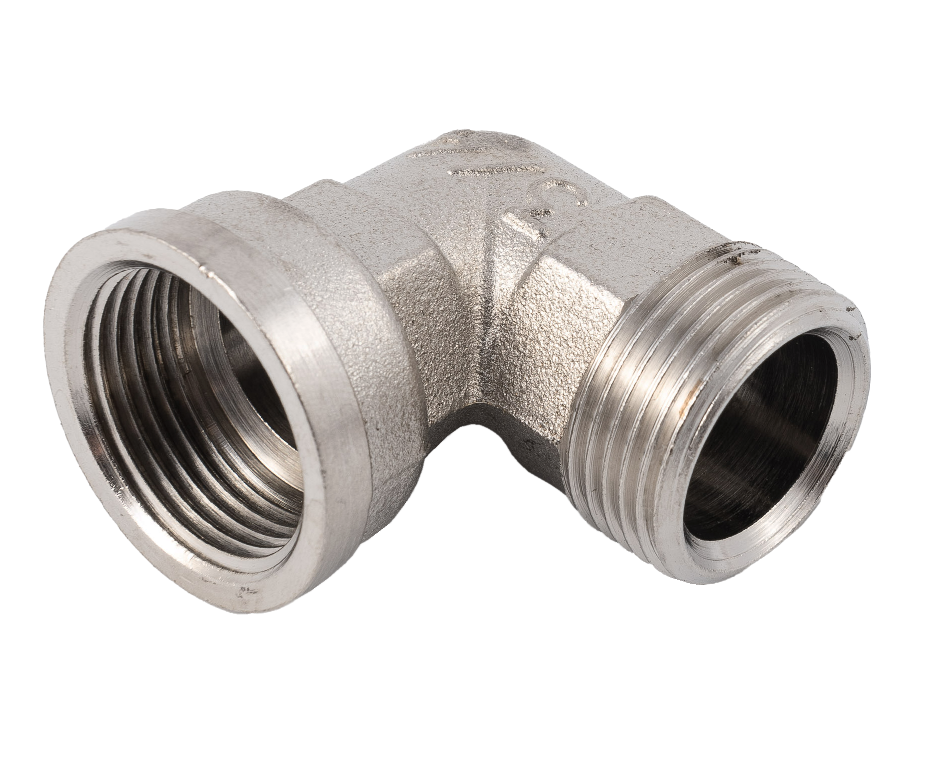 Уголок резьбовой нр/вр латунный никелированный, DN20 (3/4"), PN40 — важный элемент трубопроводных систем, предназначенный для плавного изменения направления потока рабочей среды - жидкости или газа. Эти изделия позволяют создавать повороты трубопровода под необходимыми углами, что обеспечивает правильную конфигурацию всей системы.