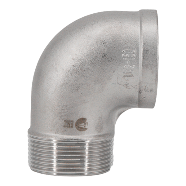 Отвод резьбовой вр/нр нержавеющий, AISI304 DN40 (1_1/2), (CF8), PN16 — важный элемент трубопроводных систем, предназначенный для плавного изменения направления потока рабочей среды - жидкости или газа. Эти изделия позволяют создавать повороты трубопровода под необходимыми углами, что обеспечивает правильную конфигурацию всей системы.