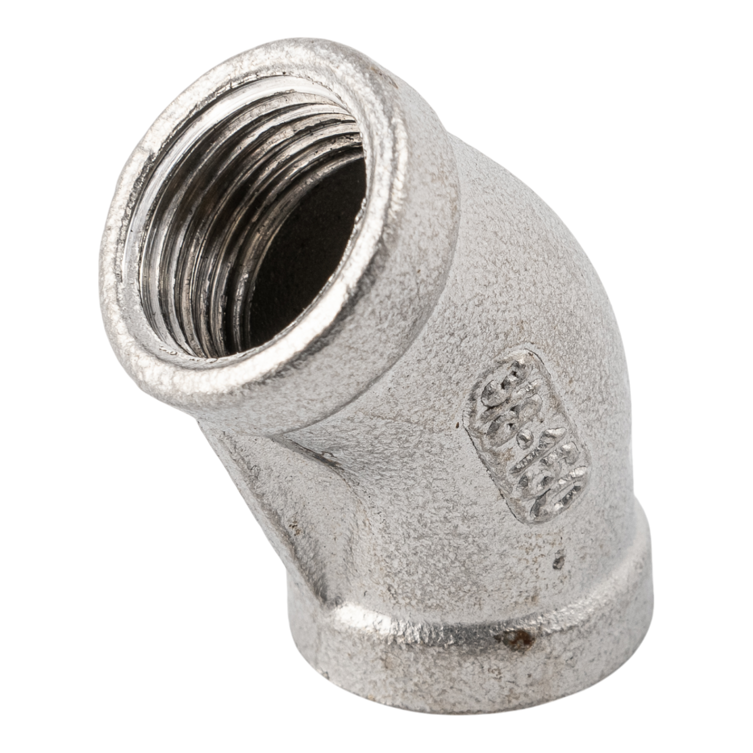 Отвод резьбовой вр/вр 45° нержавеющий, AISI304 DN10 (3/8"), (CF8), PN16 — важный элемент трубопроводных систем, предназначенный для плавного изменения направления потока рабочей среды - жидкости или газа. Эти изделия позволяют создавать повороты трубопровода под необходимыми углами, что обеспечивает правильную конфигурацию всей системы.