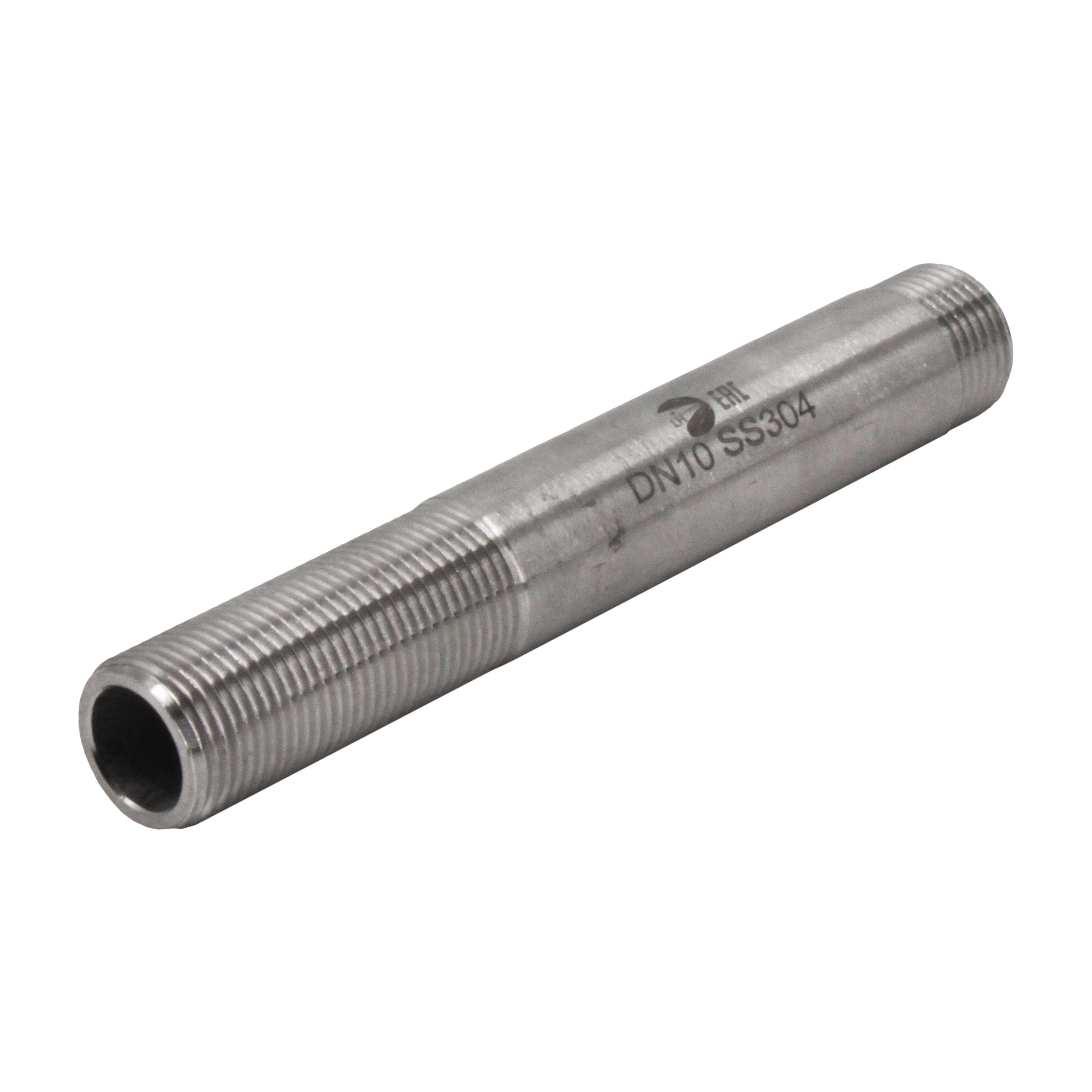 Сгон резьбовой нержавеющий, AISI304 DN10 (3/8"), (CF8), PN16 — деталь, предназначенная для резьбового соединения трубопроводов. Представляет собой отрезок трубы, имеющий на концах трубную резьбу. На одном конце резьба короткая (5-6 витков), на другом — длинная (20-30 витков). Сгон NK-DPC10/4 чаще всего применяется для соединения двух неподвижных трубопроводов, когда ни один из них нельзя поворачивать.