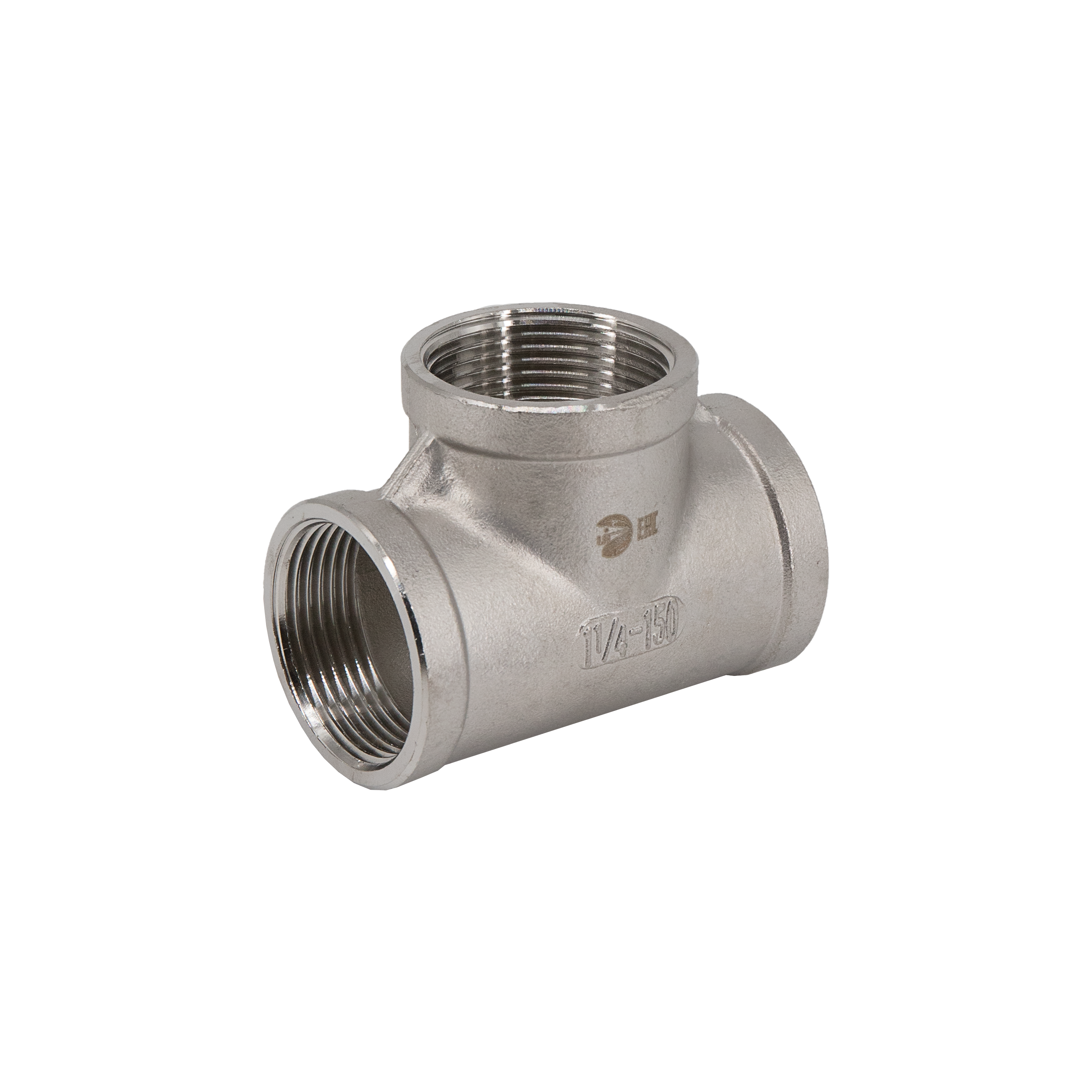 Тройник вр. нержавеющий, AISI304 DN32 (1_1/4"), (CF8), PN16 — разновидность фитинга, соединительная деталь трубопровода с тремя отверстиями, позволяющая подключать к основной трубе дополнительные ответвления.