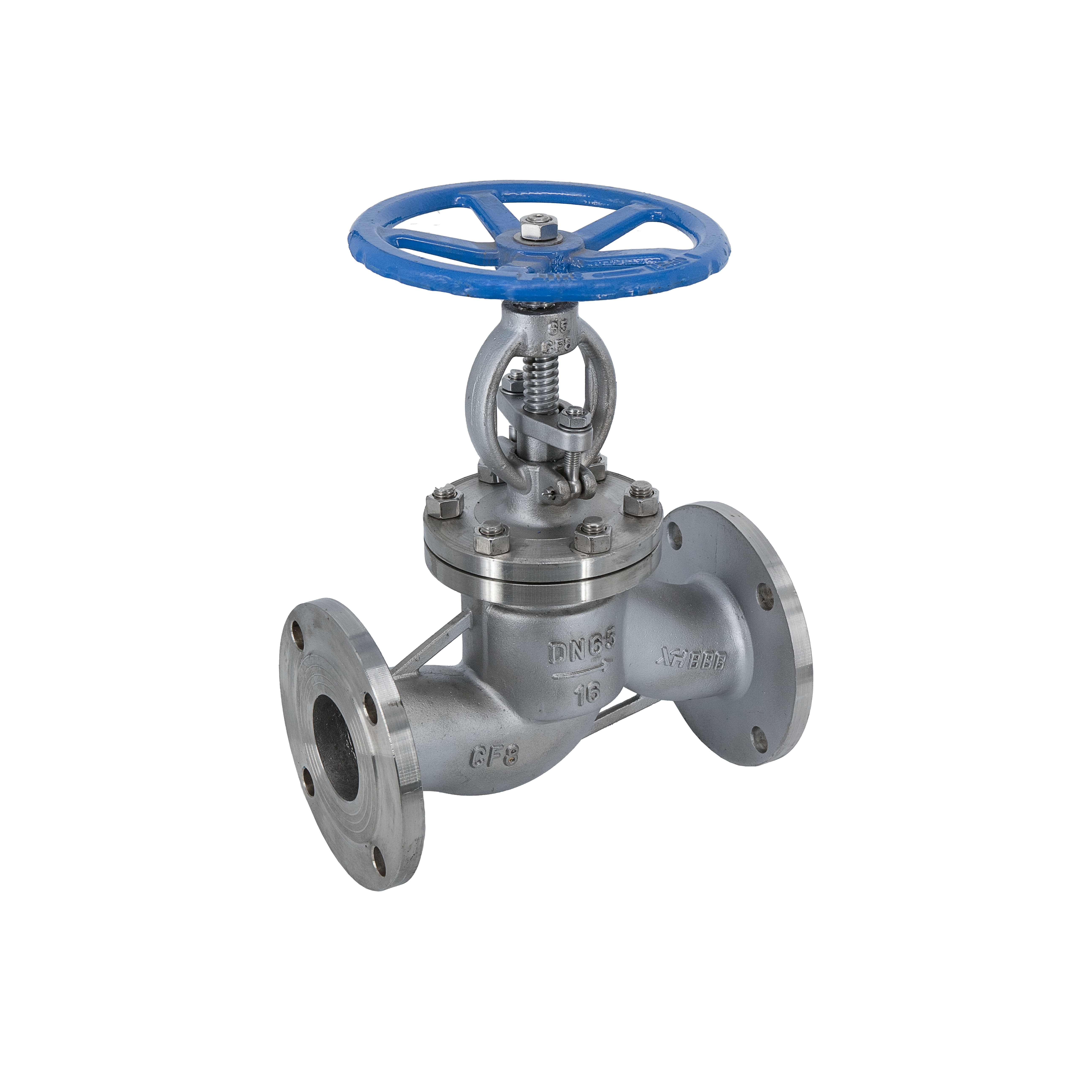 Фланцевые запорные вентили серии NK-ZSf65/4 применяются для плавного перекрытия потока среды в трубопроводах. Запорный элемент перемещается вертикально, постепенно перекрывая проходное сечение, что позволяет избежать резких перепадов давления. Фланцевое присоединение обеспечивает надёжную установку и удобство обслуживания в инженерных и промышленных системах. Вентиль запорный фланцевый нержавеющий, AISI304 DN65 (2_1/2"), (CF8), PN16 подходит для воды, пара, масел и других неагрессивных сред, где требуется точное управление и надёжное запирание.