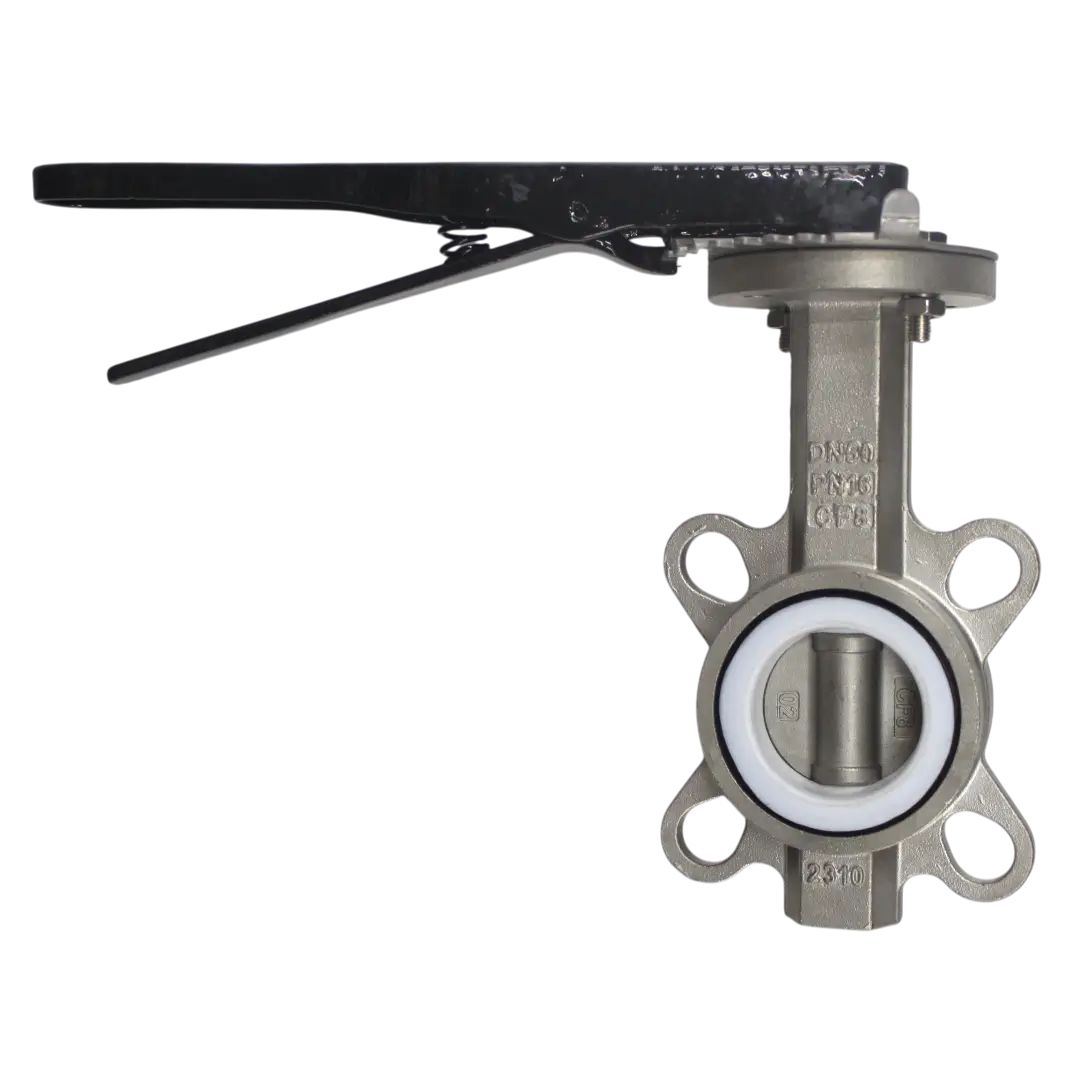 Затвор дисковый межфланцевый нержавеющий AISI304, DN50 (2"), PN16, PTFE относится к категории поворотной запорной арматуры и предназначен для быстрого перекрытия или регулирования потока среды в трубопроводе. Внутри корпуса расположен диск, который поворачивается вокруг своей оси, перекрывая или открывая поток. Такая конструкция отличается компактностью, малым весом и низким гидравлическим сопротивлением в открытом положении.